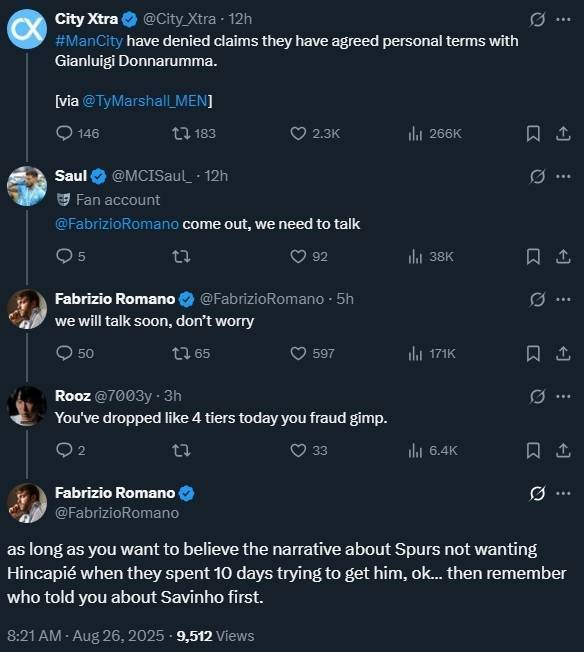 多纳鲁马交易有变?被曼城球迷喷是骗子,罗马诺回应:爱信不信